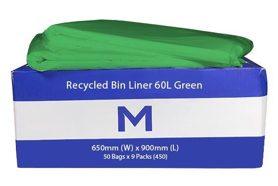 FP Recycled Bin Liner 60L - Green, 650mm x 900mm x 30mu