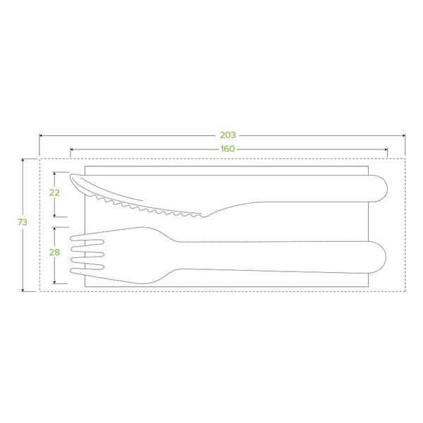 16cm Wooden Knife, Fork & Napkin Set Coated - BioPak
