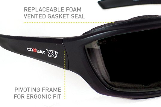 COMBAT X4' Safety spec, Foam seal, Shade Welding 5 Lens - Esko