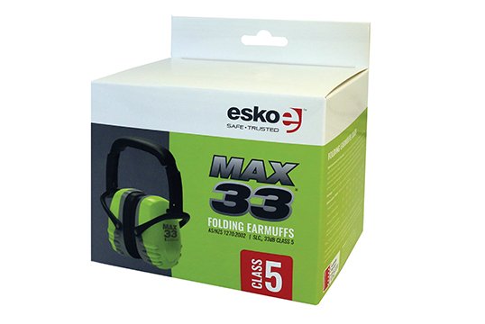 ESKO MAX33 Folding Earmuff, 33dB Class 5, Gunmetal/Neon Green, AS/NZS 1270:2002 Certified