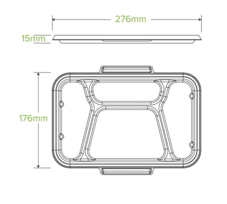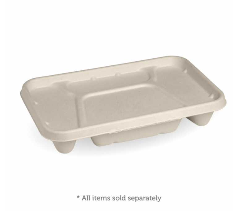 Our plastic-free 4 Compartment natural takeaway base lid is made from rapidly renewable sugarcane pulp, a by-product of the sugar refining industry.