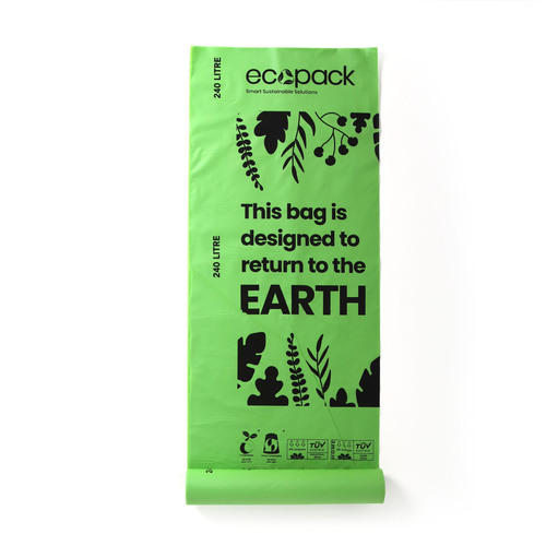 Ecopack 240L compostable bin liners are suited for large wheelie bins and commercial use bins. It is made from natural corn starch and offers an alternative to traditional plastic bags.