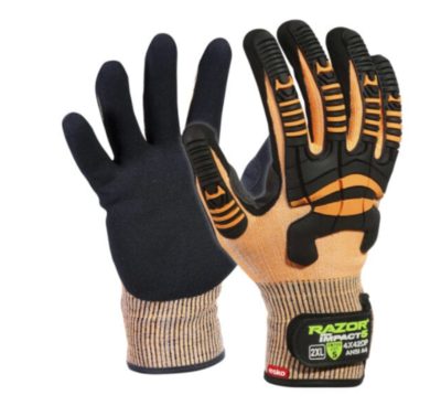 Razor Impact 5+ glove, cut resistance Level D, UHMWPE, sandy nitrile full dip coating