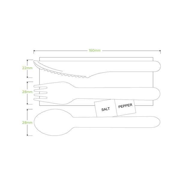16 cm coated knife fork spoon napkin salt & pepper set - BioPak