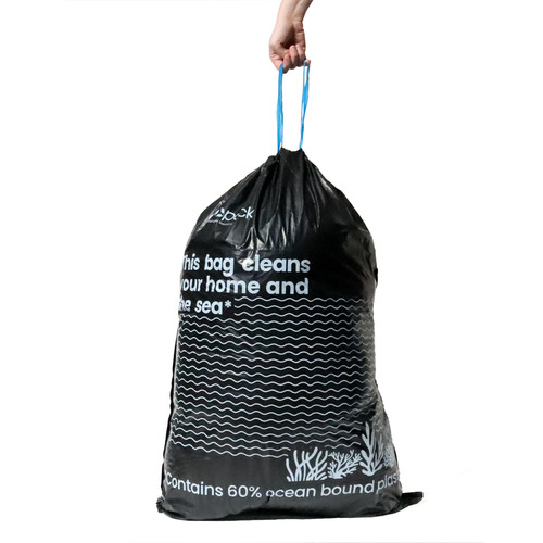 These new bin liners are made from 60% recycled ocean-bound plastic waste. They're the perfect for extra large kitchen bins, garage bins and commercial use. They have a drawstring closure to make it super easy to tie off and carry away. Do your part to ebb the flow of plastic waste by using a bin liner made from plastic waste that has been collected from coastal communities, shorelines and riverbanks before it washes out to sea.