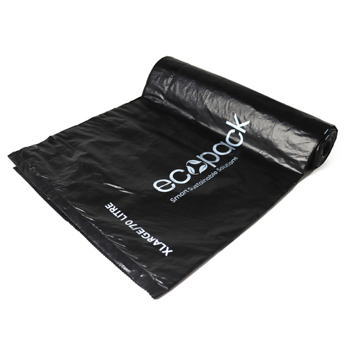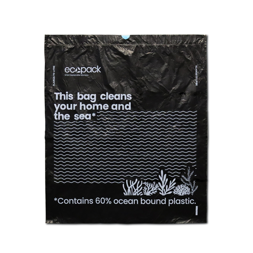 70L XL Ocean-Bound Recycled Plastic Bin Liners (Black) Roll (5 Bags) - Ecopack