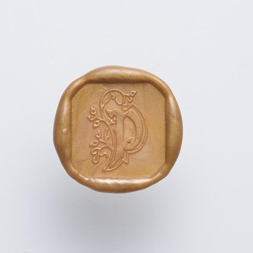 This Herbin Seal is made from 5mm thick brass and the handle is varnished wood. Handle is screwed into the brass. Seal leaves the letter impression with a square around it in the wax. 20x20mm. Illuminated letter P.