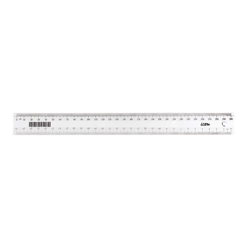 Icon 30cm plastic rulers are perfect for use at school, home or in the office to rule those straight lines. They feature bevelled edges for clean, straight lines and graduations are in millimetres and centimetres. Measurements are on both edges, millimetres on one edge and centimetres on the other. 30cm length. Clear colour. Narrow style.