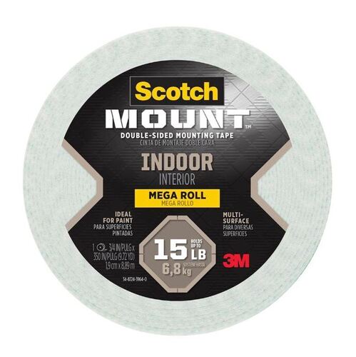 Scotch Permanent Mounting Tape is a double-coated foam tape that conforms to a variety of surfaces. Ideal for mounting light to medium weight objects to both horizontal and vertical surfaces. Holds up to 6.8 kg per 2.03m. 19mm x 8.8m.
